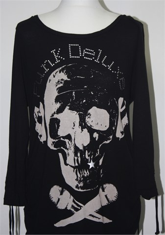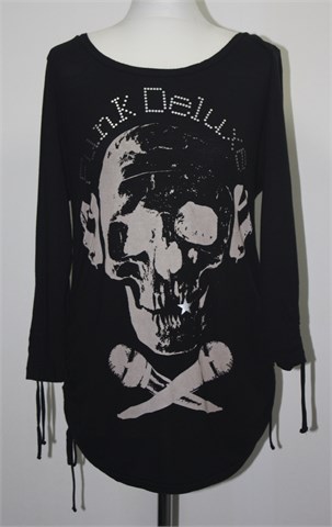 Fishbone tunika sa poludugim rukavima, crne boje sa prednjim printom. Bočne vezice za stezanje. Lagana i rastezljiva.