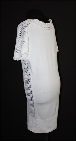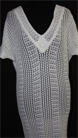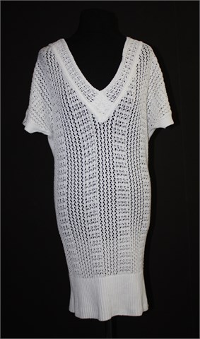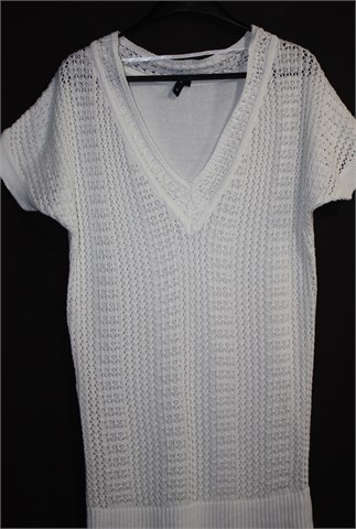 Flame pletena končana tunika sa kratkim rukavima, bijele boje. Sa prednje strane rupičasto pletivo (vidljivo na slikama). Rastezljiva.