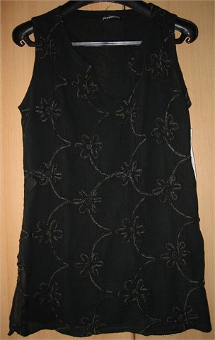 Bez rukava, blago prozirna, našiveni cvjetovi na tkaninu, bočni prorezi, malo rastezljiva