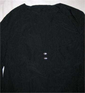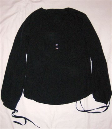 Šuškavi materijal, sa vezicama i prorezima duž čitave dužine rukava, na dekolteu dva ušivena cirkona