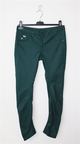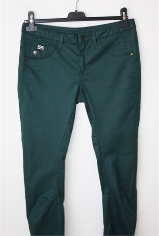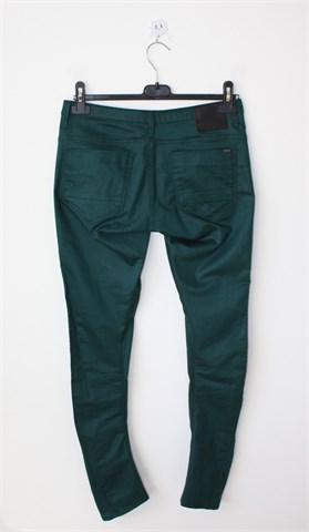 G-Star Raw Denim traper hlače zelene boje (unutarnji sloj crne boje, vanjski blago sjajan - uživo je boja više zelena nego na slikama). Prednji cif i kopčanje, pasica za remen. Prednji i stražnji džepovi, twisted nogavice. Super skinny model, rastezljive. Plitki model, niski struk (vidjeti mjere).
