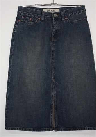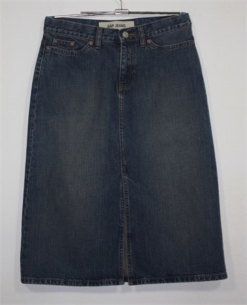 Gap Jeans vintage suknja od trapera, srednje plave boje mjestimično ispranog izgleda. Prednji cif i kopčanje, prednji i stražnji klasični džepovi. Prednji rasporak.
