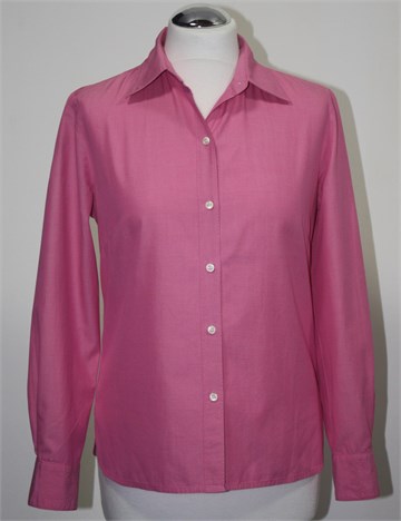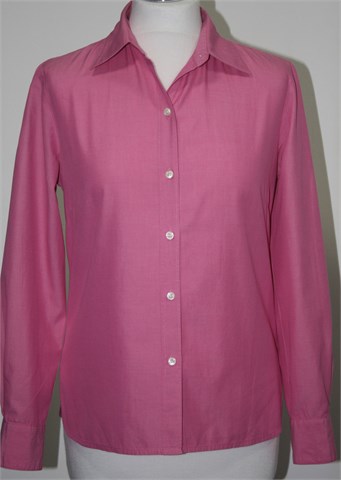 Gap košulja sa dugim rukavima, roze boje sa diskretnim uzorkom na tkanini (materijal ima blagi efekt presijavanja). Prednje klasično kopčanje, prednji i stražnji ušitci (strukirana). Mali bočni rasporci. Lagan, mekan i vrlo kvalitetan pamuk.