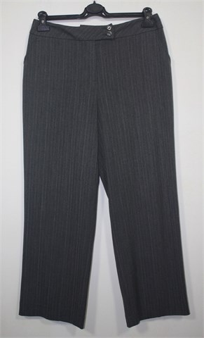 Gelco hlače sive boje sa diskretnim prugastim uzorkom. Prednji cif i kopčanje, prednji bočni džepovi. Tanji i mekan štofasti materijal. Dublji model, blago rastezljive.