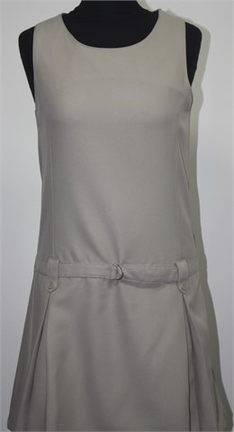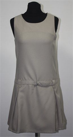 George haljina/tunika bez rukava, bež boje. Prednji i stražnji ušitci, falde u donjem dijelu. U struku je vizualno rezana, prema dolje se blago širi. Stražnji cif.