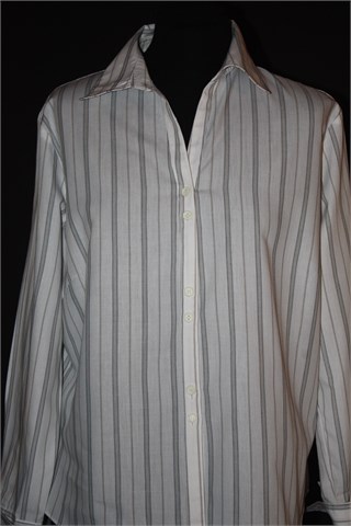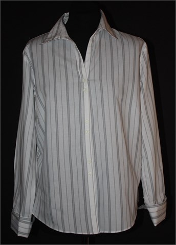 George košulja bijele boje sa prugama. Dugi rukavi, prednje kočanje. Prednji i stražnji ušitci (blago strukirana). Lagan materijal, nije rastezljiv.