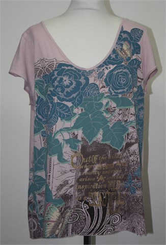 George majica sa kratkim rukavima, roze boje sa prednjim printom. Tanki, mekan i blago rastezljiv pamuk.