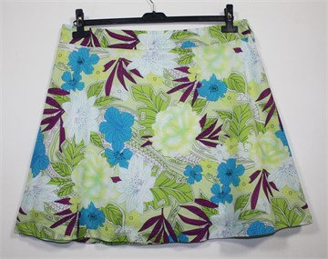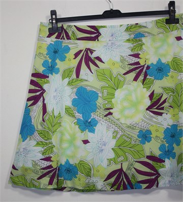 George pamučna suknja svijetlo zelene boje sa šarenim cvjetnim printom (boje i uzorci kao na slikama). Pasica za remen, stražnji cif i kopčica. Podstavljena.