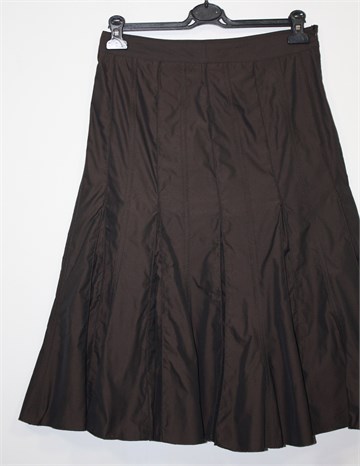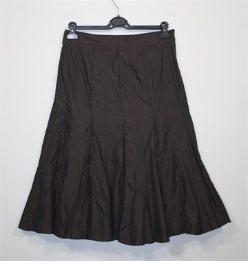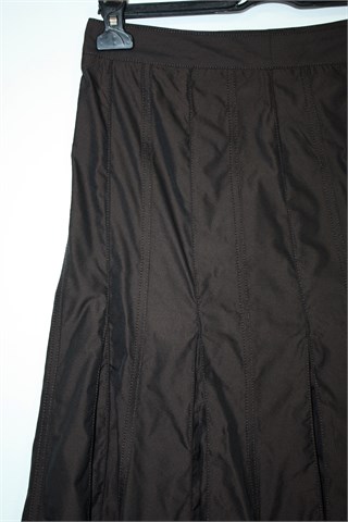 Gerard Darel dizajnerska suknja smeđe boje, materijal je blago šuškav i zgužvan. Falde i ukrasni prošivi sa prednje i stražnje strane, materijal je čvrst i gladak.
