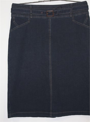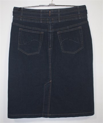 Gerry Weber suknja od trapera, tamnije plave boje. Pasica za remen sa pripadajućim remenom (može se skinuti), stražnji cif. Prednji i stražnji džepovi, blago rastezljiva. Bočni rasporak.