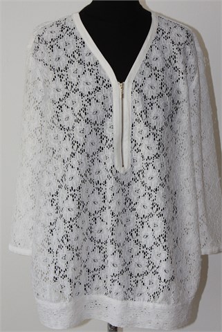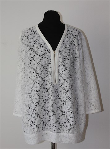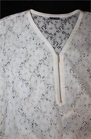 Gerry Weber bluza sa poludugim rukavima bijele boje, materijal je imitacija čipke (obrubi rukava i ovratnika sjajni materijal). Cif sa prednje strane (do cca pola dužine), gumbić na kraju svakog rukava. Materijal je providan i blago rastezljiv.