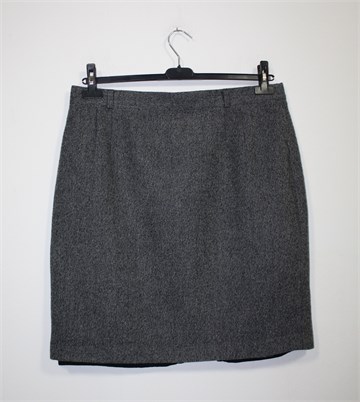 Gerry Webber suknja od vunastog štofa prošarano bijelo-plavo-crne boje. Uska pasica za remen, stražnji cif. Podstavljena. Srednje debljine.