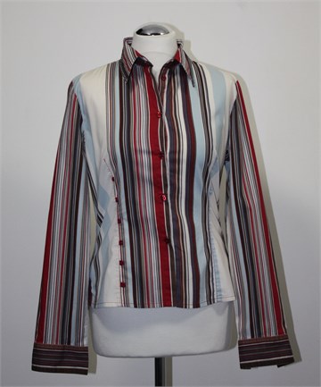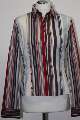 Gin Tonic prugasta košulja sa dugim rukavima. Prednje kopčanje, prednji i stražnji ušitci (blago strukirana). Mali bočni prorezi, deblja i blago rastezljiva.