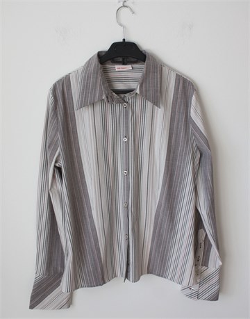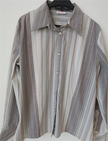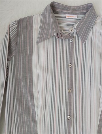 Gin Tonic košulja sa dugim rukavima, prugasti uzorak (boje i uzorak pruga vidljivi na slikama). Prednje kopčanje, blago strukirana. Malo rastezljiva, mali bočni prorezi.
