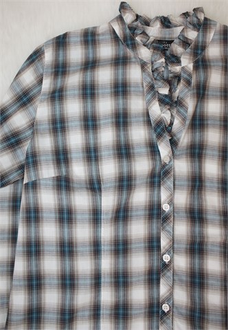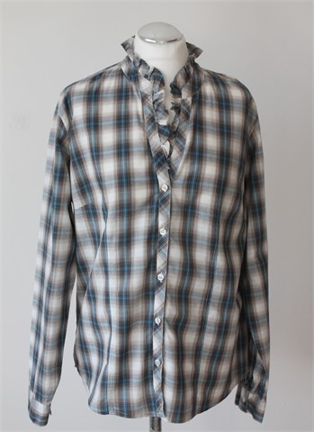 Gina Benotti košulja sa dugim rukavima, prugasti uzorak (boje i uzorak vidljivi na slikama). Prednje kopčanje, vrlo blago strukirana. Nije rastezljiva.