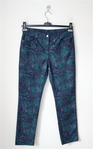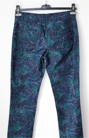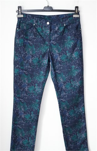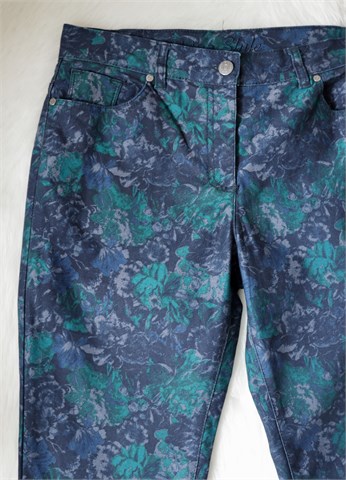 Gina Benotti traper hlače od tankog i rastezljivog trapera, sa cvjetnim printom (boje i uzorak printa vidljivi na slikama). Prednji cif i kopčanje, pasica za remen. Prednji i stražnji džepovi.