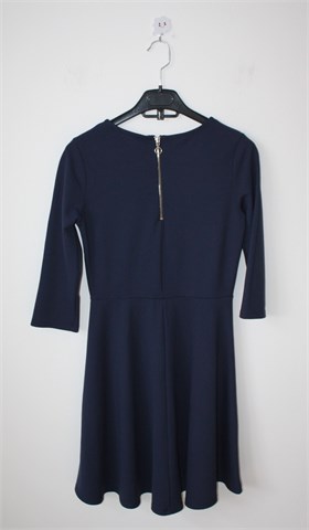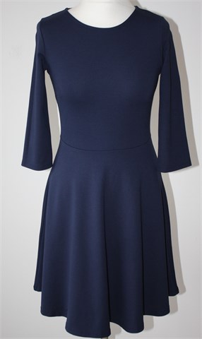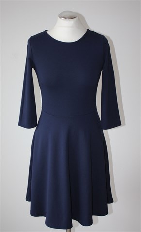 Ginatricot haljina sa poludugim rukavima, tamnije plave boje. Cif na leđima. Materijal srednje debljine, rastezljiv.