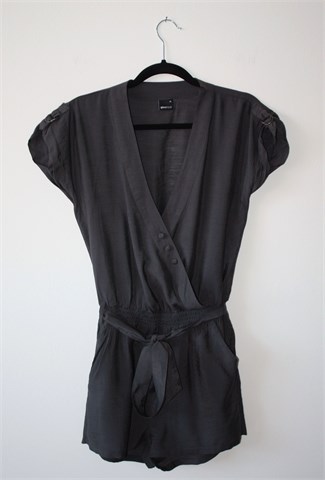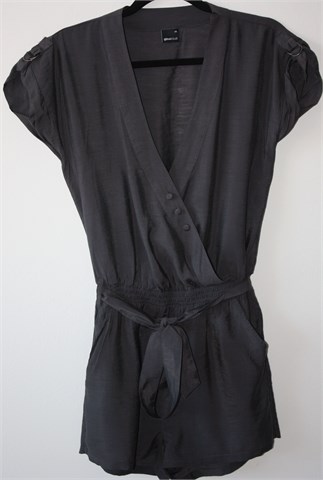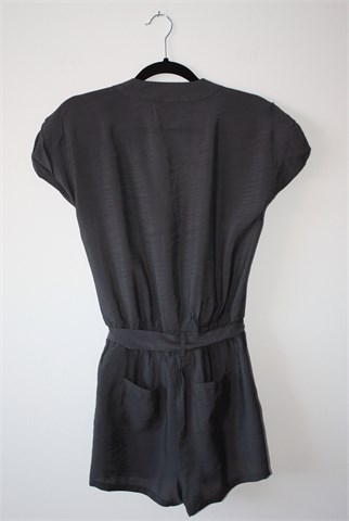 Ginatricot kombinezon sa kratkim hlačicama, gornji dio kratki rukavi (mogu se nositi i kao kraći - vidljivo na slikama). Prednji otvor i kopčanje sa tri gumbića, prošiven gumicama u struku (prilagodljiva širina - vidjeti mjere). Prednji i stražnji džepovi, remen u struku od istog materijala (može se izvaditi). Lagan i prozračan materijal, blago sjajan.
