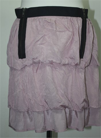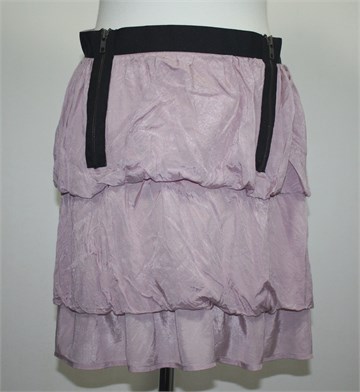 Ginatricot prekrasna suknja od glatke i svilenkaste viskoze, boja je svijetla prljavo roza. Pasica je crne boje, sa prednje strane dva cifa. Podstavljena pamučnom podstavom.