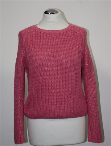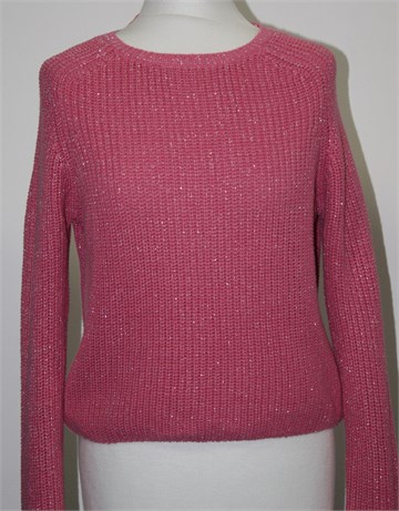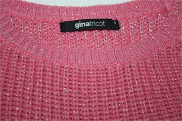 Ginatricot vesta/pulover roze boje sa sjajnim srebrnim nitima. Blago stegnuta na kraju pasice i na rubovima rukava. Kraći model (vidjeti mjere).