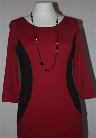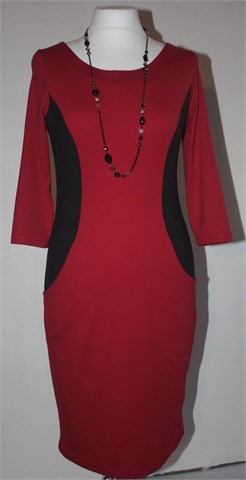 Greence haljina sa poludugim rukavima, tamnije crvene boje sa bočnim detaljima u crnoj boji. Mekan, tanak i rastezljiv pamuk. Bočni džepovi.