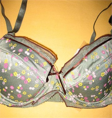 Sastav: 95% pamuk 5% elastan Potpuno nov, nenošen. Ima etiketu i rezervne jastučiće. Maslinasto zelene boje sa cvjetičima. Obrubljen ukrasnom čipkicom. Naramenice se mogu skinuti. Veličina odgovara broju 2.