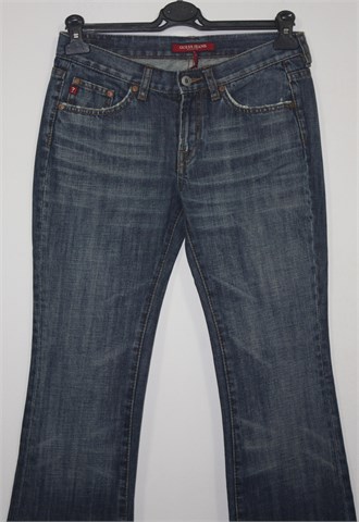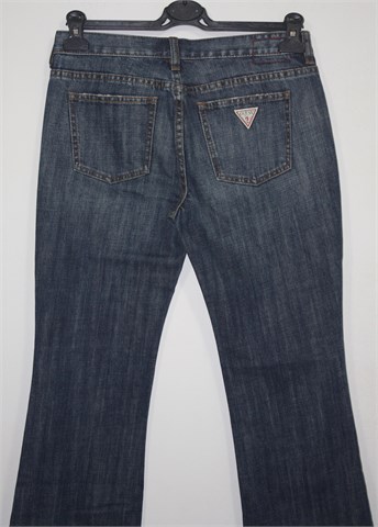 Guess Jeans traper hlače, srednje plave boje mjestimično ispranog i iscufanog izgleda (tvornički vintage izgled). Prednji cif i kopčanje, pasica za remen. Prednji i stražnji klasični džepovi. Čvrst i nerastezljiv traper.