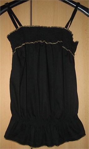Košuljica bez rukava. Gumica na dekolteu i na donjem dijelu, prošivena zlatnim koncem. Prilagodljive naramenice (kao na grudnjaku). Može i veličina 40 jer se zbog gumica dosta prilagođava tijelu.