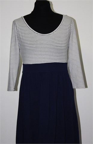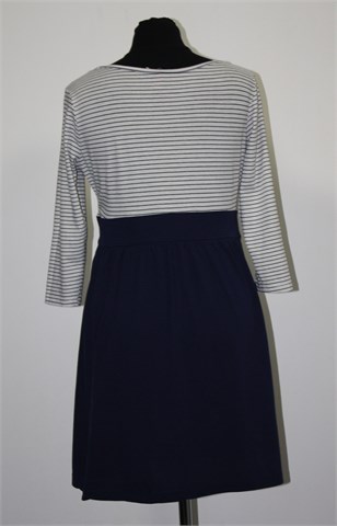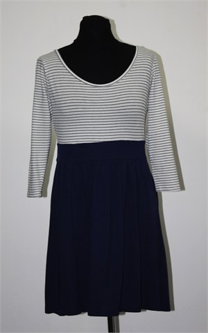 H&M Divided kraća haljina/tunika sa poludugim rukavima. Gornji dio bijele boje sa tamno plavim prugama, donji dio tamno plave boje. Mekana i rastezljiva, tanji materijal.