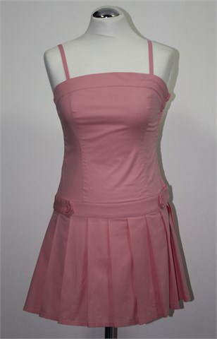 H&M Divided kraća haljina/tunika roze boje sa tankim, fiksnim naramenicama (ručno zašivene da budu malo kraće od originalnih). Vizualno rezana u struku. donji dio plisirane falde. Bočni cif, na leđima je rastezljiva gumica u šavu pa je širina prilagodljiva (vidjeti mjere). Cijela blago rastezljiva.