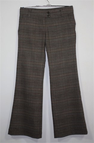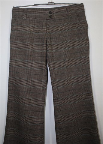 H&M Divided hlače smeđe-bež boje s uzorkom (boje i uzorak kao na slikama), deblji štofasti materijal. Prednji cif i kopčanje, pasica za remen. Prednji bočni, stražnji džepovi sa preklopom i gumbićem. Blago rastezljive.