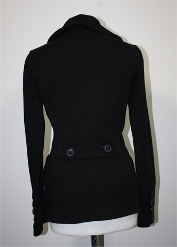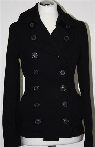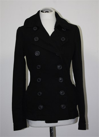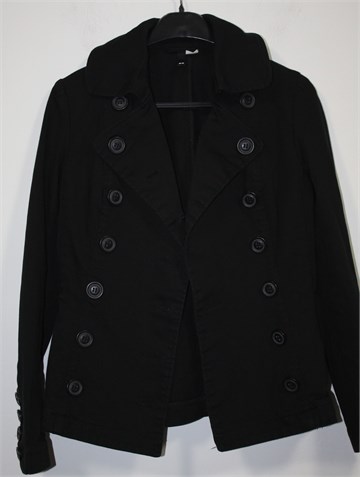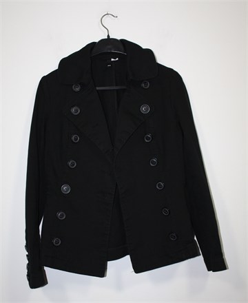 H&M Divided jakna crne boje, deblji i rastezljivi pamuk. Prednje kopčanje, prednji bočni kosi džepovi. Strukirana.