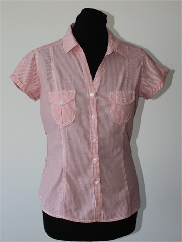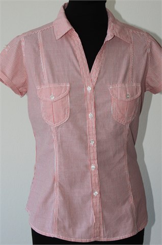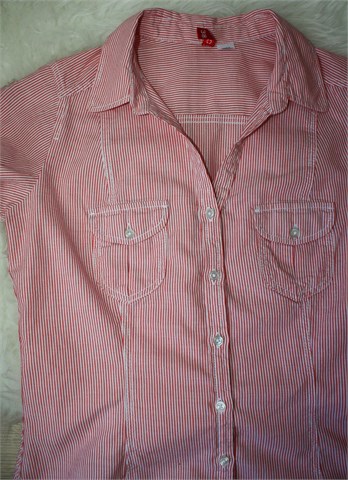 H&M košulja sa kratkim rukavima, bijele boje sa crvenim prugama. Prednje kopčanje, na prsima mali džepići sa preklopom i gumbom. Strukirana, rukavi se mogu nositi i kao kraći (vanjski gumbić na rukavu i vezica unutar rukava). Nije rastezljiva.