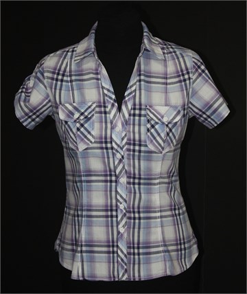 H&M Divided košulja sa kratkim rukavima, bijele boje sa kariranim uzorkom. Strukirana, džepići na prsima. Gumbići na krajevima rukava.