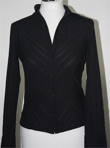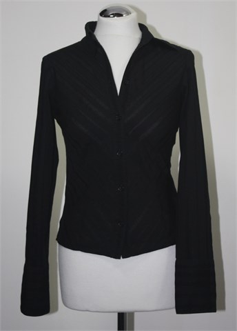 H&M Divided košulja sa dugim rukavima, crne boje sa širokim prugama (blago je providna). Prednje klasično kopčanje na gumbe, ušitci (strukirana).