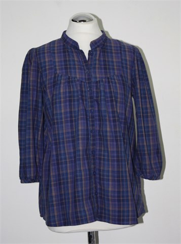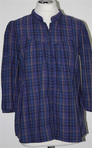 H&M Divided košulja sa poludugim rukavima, plavo-ljubičaste boje s uzorkom (boje i uzorak kao na slici). Prednje kopčanje, bočni džepovi. Širi model.