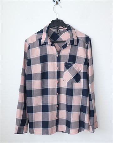 H&M Divided košulja sa dugim rukavima, prugasto-karirani uzorak u kombinaciji roze, plave i bijele boje. Prednje kopčanje, džepić na prsima. Mekan pamuk, nije rastezljiv.
