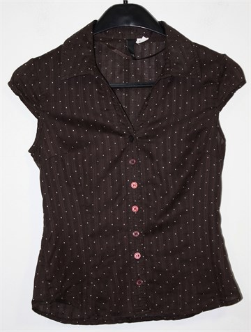 H&M Divided košulja sa kratkim rukavima, tamno smeđe boje sa bijelim točkicama. Prednje kopčanje, strukirana. Tanji i lagan pamuk.
