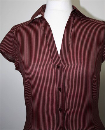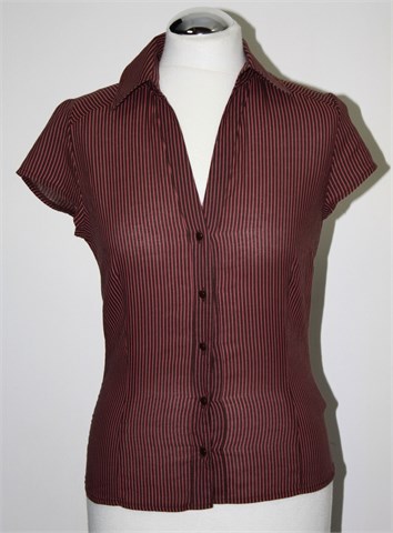 H&M Divided košulja sa kratkim rukavima, smeđe boje sa rozim prugama. Prednje kopčanje, prednji i stražnji ušitci (strukirana). Tanji i nerastezljiv pamuk.