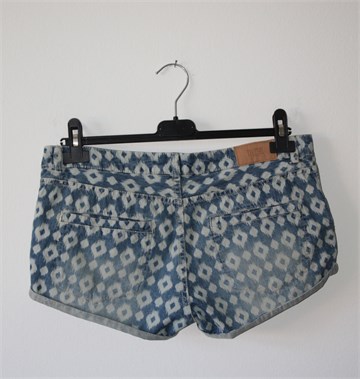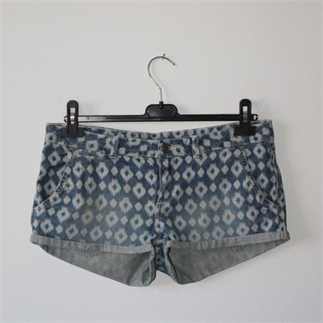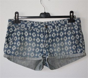 H&M Divided kratke traper hlače plave boje s uzorkom (uzork vidljiv na slikama), used look. Prednji cif i kopčanje, pasica za remen. Prednji i stražnji džepovi. Mekan traper, nije rastezljiv.