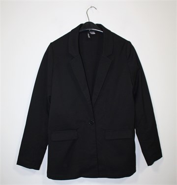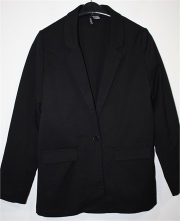 H&M Divided sako/blazer crne boje, oversized model. Prednje kopčanje, bočni džepovi sa preklopom. Rukavi su podstavljeni, mogu se nositi podfrknuti (pa je podstava vidljiva). Lagan, nosiv cijele godine.