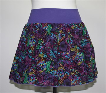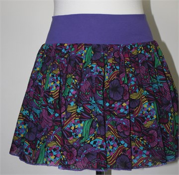 H&M Divided kratka pamučna suknja ljubičaste boje sa šarenim printom (boje i uzorci kao na slikama). Šira rastezljiva pasica, podstavljena crnom podstavom (pamučnom). Tanja i lagana.