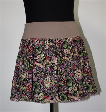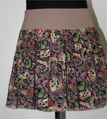 H&M Divided kraća pamučna suknja sa šarenim printom (pasica je bež boje). Šira rastezljiva pasica, podstavljena crnom podstavom (pamučnom). Lagana i lepršava.