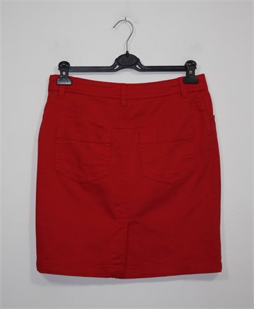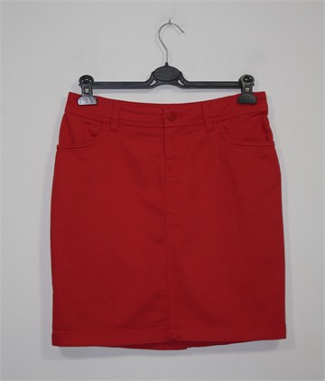 H&M Divided traper suknja crvene boje (lijepa intenzivna nijansa). Prednji cif i kopčanje, pasica za remen. Prednji i stražnji klasični džepovi, mali stražnji rasporak. Blago rastezljiva.