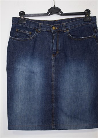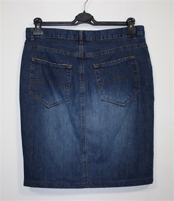 H&M Divided traper suknja tamnije plave boje mjestimično ispranog i iscufanog izgleda (tvornički used look). Prednji cif i kopčanje, pasica za remen. Prednji i stražnji klasični džepovi. Nije rastezljiva.