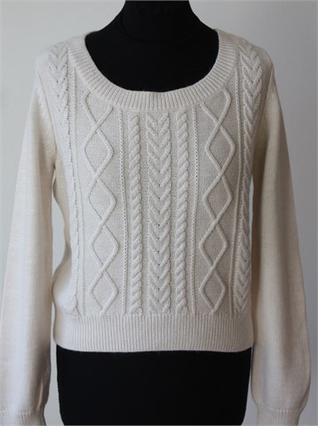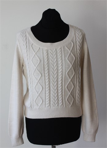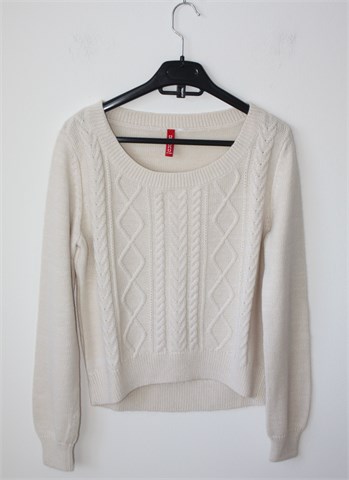 H&M Divided vesta/pulover prošarano bijelo-svijetlo bež (prljavo bijele boje). Sa prednje strane uzorak pletenica, stražnji dio je nešto duži od prednjeg (vidjeti mjere). Ugodno, mekano i blago rastezljivo pletivo.