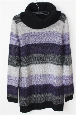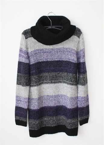 H&M Divided vesta/dolčevita u prugastoj kombinaciji crne, sive, bijele i ljubičaste boje (vidljivo na slikama). Mucasto, deblje i rastezljivo pletivo.