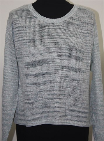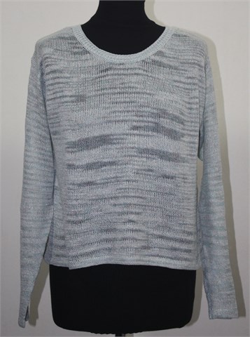 H&M Divided pulover/vesta prošarano bijelo-plave boje, protkana sjajnim srebrnim nitima. Kraći i širi model (oversized). Lagano, blago rupičasto pletivo. Rastezljivo.