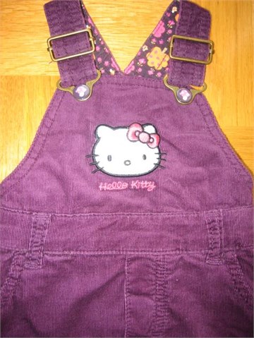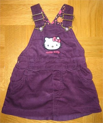 Prekrasna Hello Kitty haljina na tregere tamno ljubičaste (boje ciklame) od laganog samta. Sa prednje strane Hello Kitty print. Podesive naramenice, pasica za remen i pravi džepovi. Sa stražnje strane gumica za bolje pristajanje.
