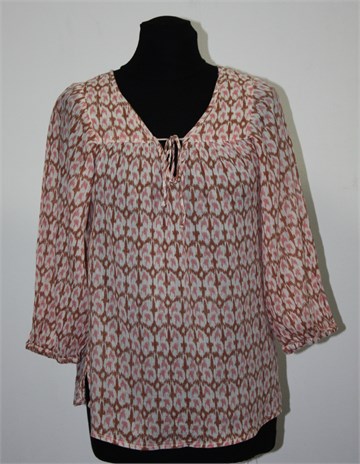 H&M L.O.G.G. bluza sa poludugim rukavima (gumica na kraju svakog rukava), bijele boje s uzorkom/printom na materijalu (vidljivo na slikama). Tanji, lagan i prozračan pamuk (blago gazast materijal). Blago rastezljiva, mali bočni prorezi.